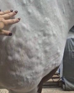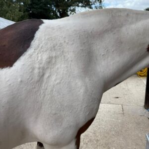 Catherine was actually recommended to me by a friend who had been telling me to use her for MONTHS before I actually bit the bullet and booked her in. The months leading up to Catherine visiting included LOTS of veterinary intervention. Numerous steroid jabs, pills, potions, salt therapy, cryotherapy, and plenty of despair! I desperately wanted to get my horse ‘fixed’ but the skin flare ups just kept coming, thick and fast, with absolutely nothing helping and definitely nothing actually resolving the issue. I was desperate, exhausted and frustrated – and so was poor George.